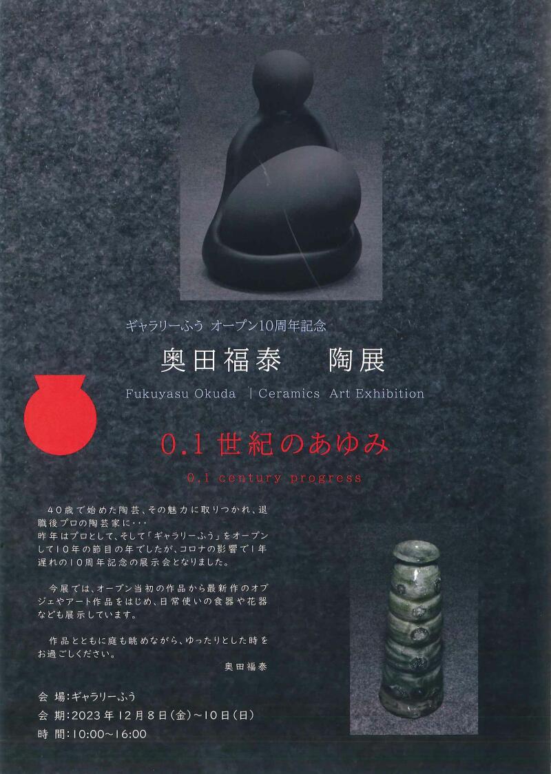 ギャリー ふうオープン10周年記念 奥田福泰 陶展の案内