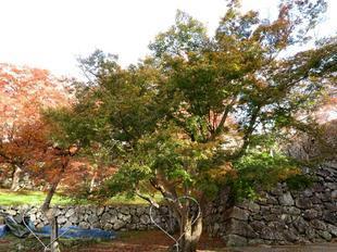 二の丸から階段を上がり、腰巻櫓付近のモミジの紅葉です。