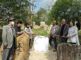 泰西寺の奥の院前で八木芙卯さんの除幕式です。