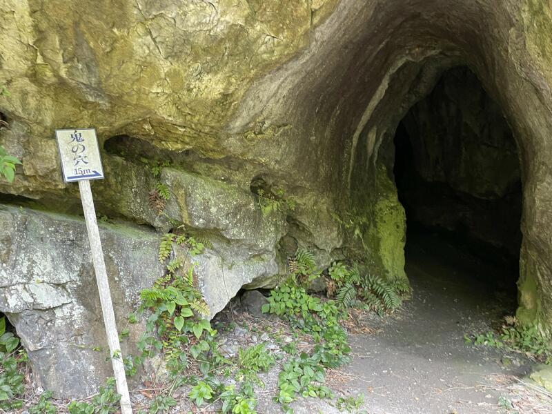 国道側の石灰岩壁には「鬼の穴」があり、五十メートル程入ることができる。洞内には明治維新の際、山陰鎮撫総監の西園寺公望公が通過の折に書かれた壁書が刻まれており、また、イシノミの一種、トビムシの一種、ヤスデの一種、その他小動物の生息が確認さ れている。