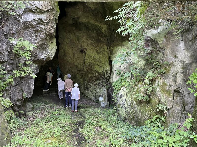 また明治維新の際、西園寺公望公が「山陰鎮撫総督」となり薩長の兵を率いて丹波路から鳥取、松江、杵築に至り帰途四十曲峠を経て新庄、勝山に一泊したがその途次この洞内に入り「慶応四年三月九日山陰惣督藤公望到穴」と壁書した刻みがある。