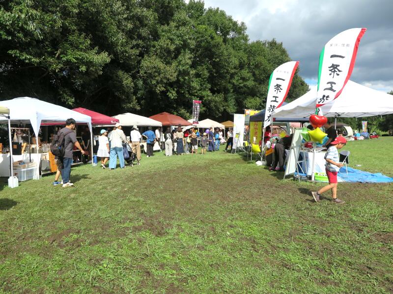 会場は前日の雨で少しぬかるんでいましたが皆さん楽しそうにお買い物しています。