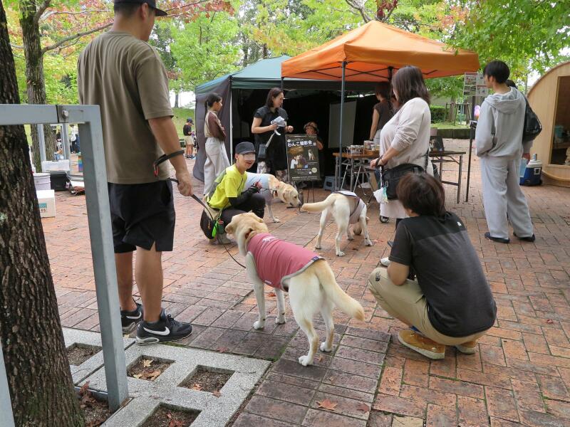 噴水広場の様子です。 ワンちゃんの撮影会が大人気です。