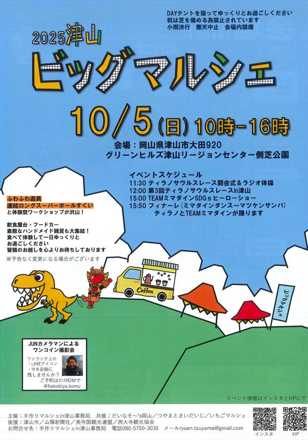 2025年10月5日(日)、津山市大田にあるグリーンヒルズ津山リージョンセンター側芝公園にて「2025津山ビッグマルシェ」(主催:手作りマルシェ in 津山事務局)が行われました。