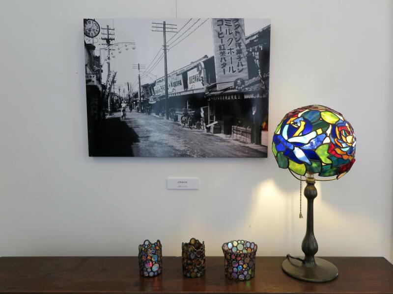 写真は、江見写真館三代目・江見 正さん(1890~1976)が撮影した大正末期から昭和初期の津山の街並みや暮らしを撮影したもので、子どもの頃よく遊んでいたわらぐろ等が移った田んぼの写真を見つけ、当時に思いをはせながら懐かしく拝見しました。また、江見正暢 ステンドグラス展では、飾られた部屋がパット明るくなるステンドグラスのランプが並んでいて、華やかで「わぁ~綺麗!」と思わず叫んでいました。 隣の部屋では、昭和の津徳守神社の津山祭りの9.5ミリ映像が上映されていました。