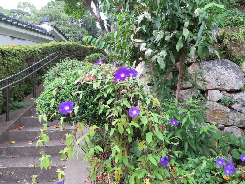 つやま自然のふしぎ館 玄関入り口の西洋アサガオが可愛い