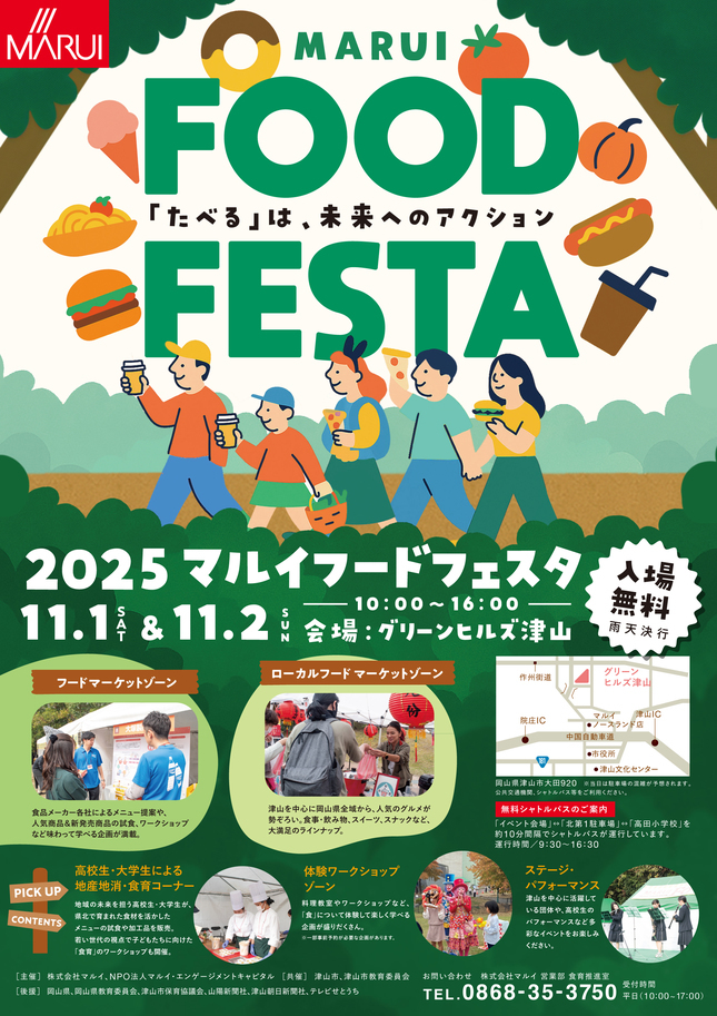 2025年11月1日・2日に「2025 マルイフードフェスタ」がグリーンヒルズ津山で開催されました。