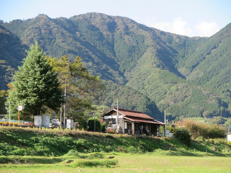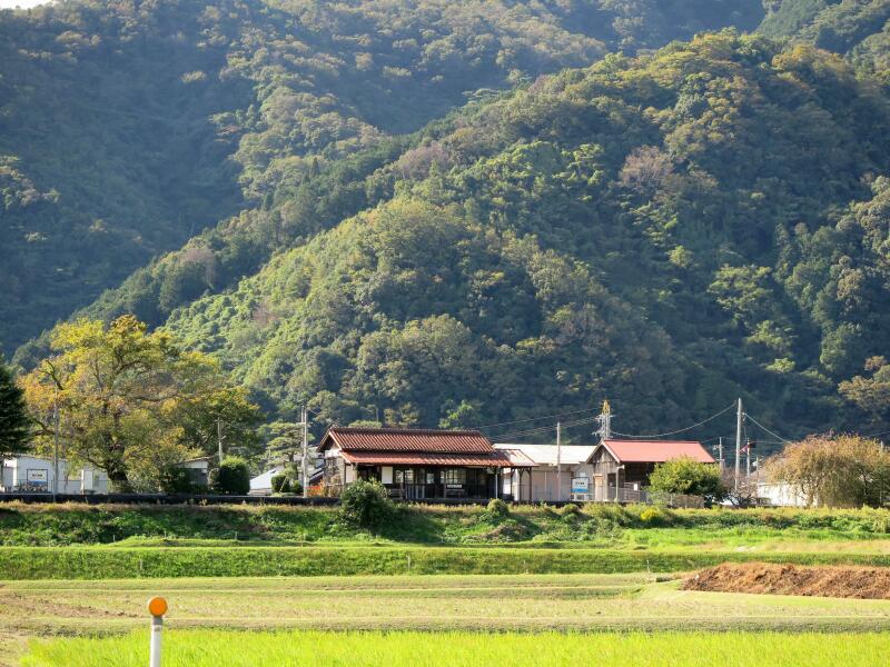 戦前に建築された古い木造平屋作りの駅舎は「男はつらいよ」シリーズの最終作となった「男はつらいよ 寅次郎紅の花」の冒頭のシーンに登場し、駅前には映画の撮影が行われたことを記念した碑も建てられています。(2008年11月に登録有形文化財に登録されております。)