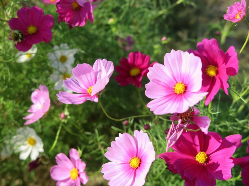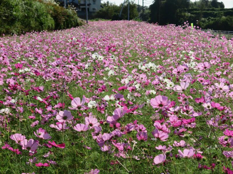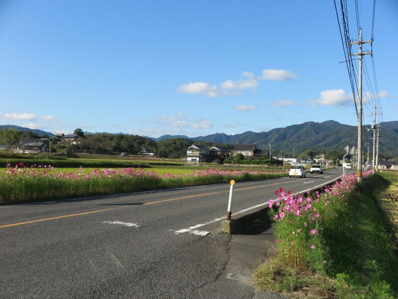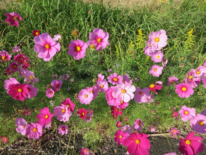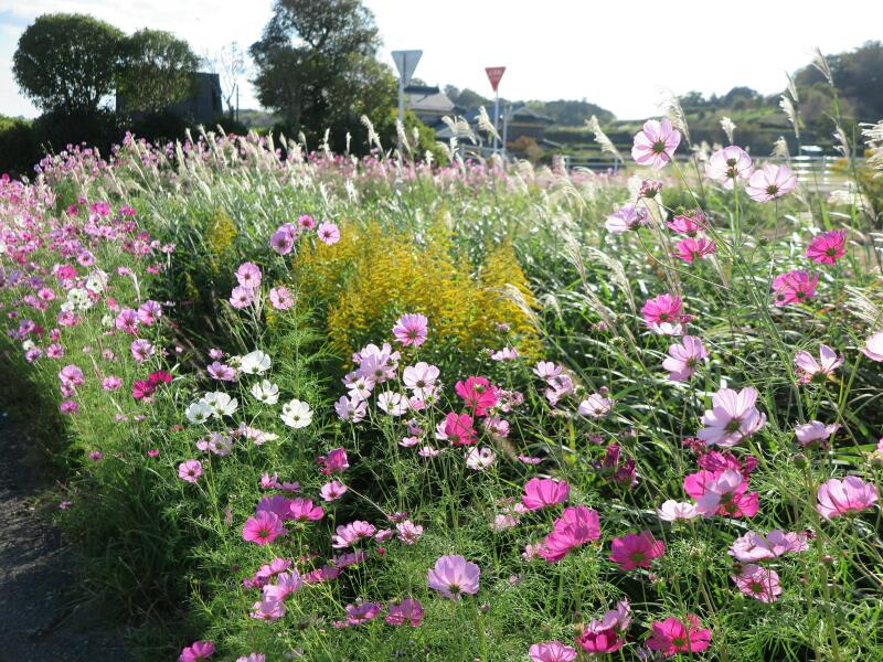 下高倉西の道路沿いに咲くコスモス