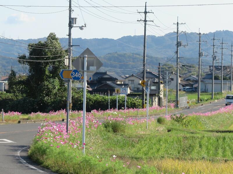 津山市下高倉の県道345号線沿いのコスモス