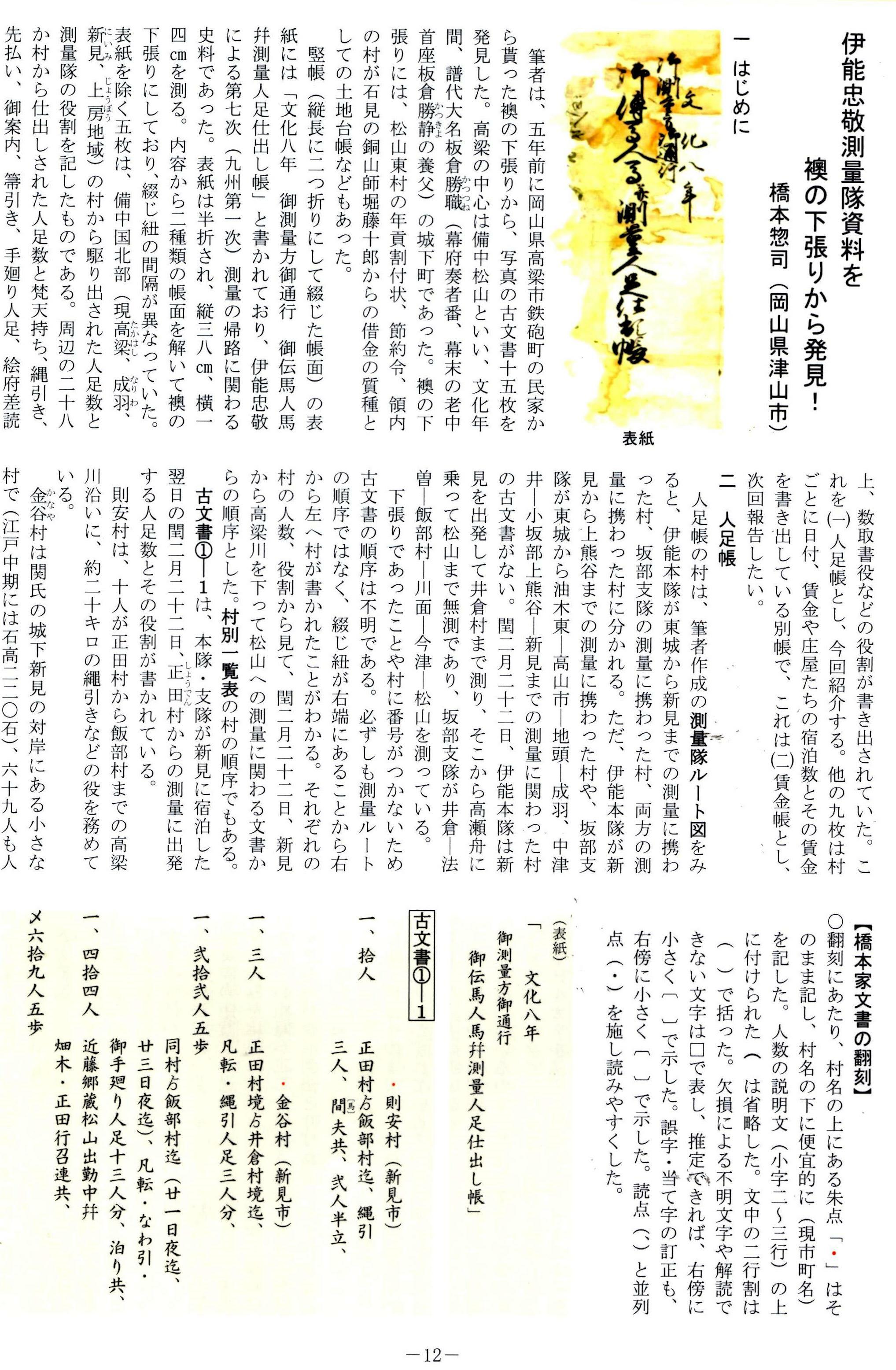 伊能忠敬研究論文(文化八年備中国測量)伊能忠敬研究会会員