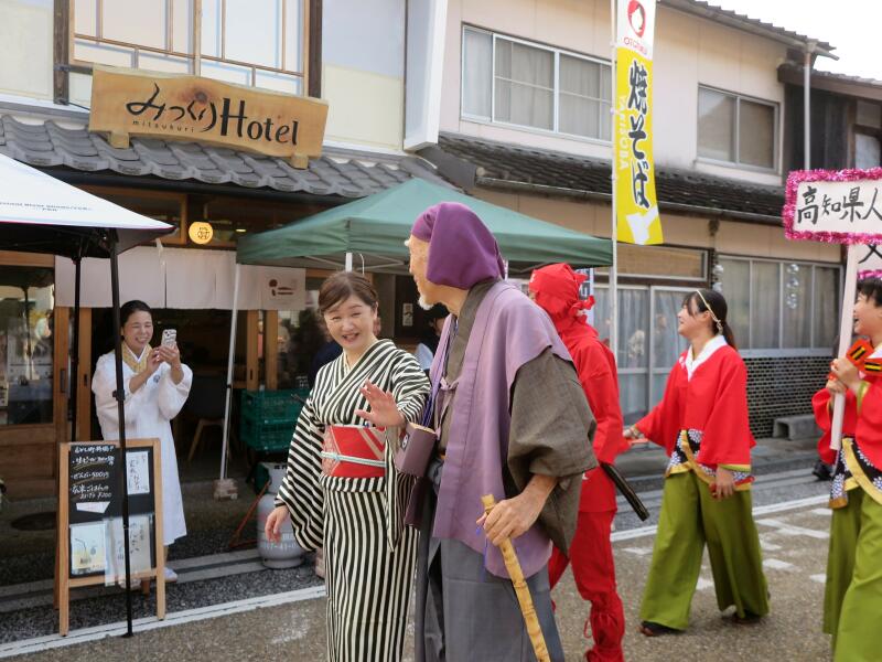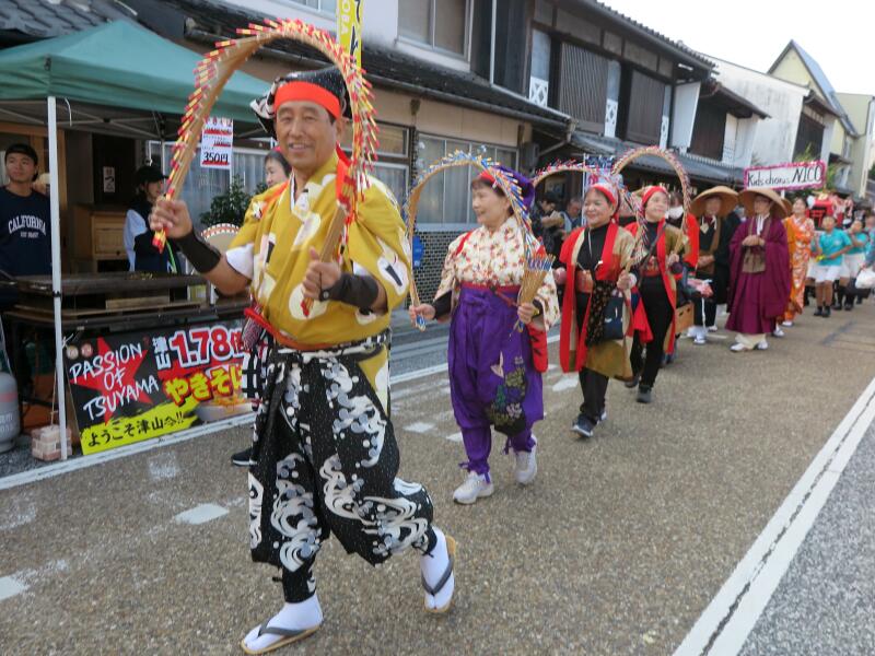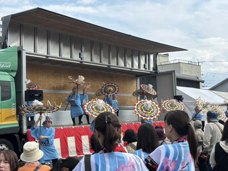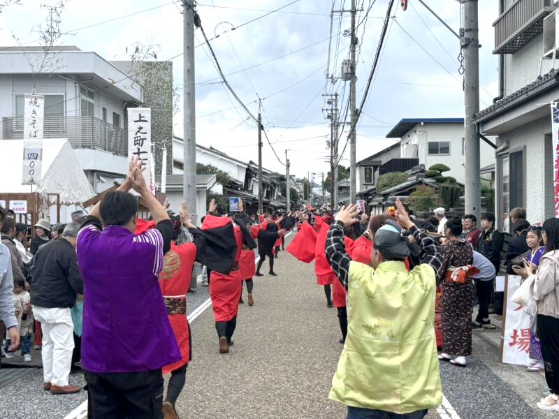 当日は歩行者天国になり、ゆっくりと散策が出来ました。キッチンカーやうまいもん屋台が多数出店していて家族そろってワイワイガヤガヤ言いながらグルメを楽しみ、あっちぶらぶら、こっちぶらぶら食べ歩き。また、今年からオープニングパレードが復活して、出雲のお国・名古屋山三郎をはじめ、忍者やお殿様、お姫様が旧街道を練り歩きました。ステージイベントも盛りだくさんで大勢の方が楽しんでおられました。