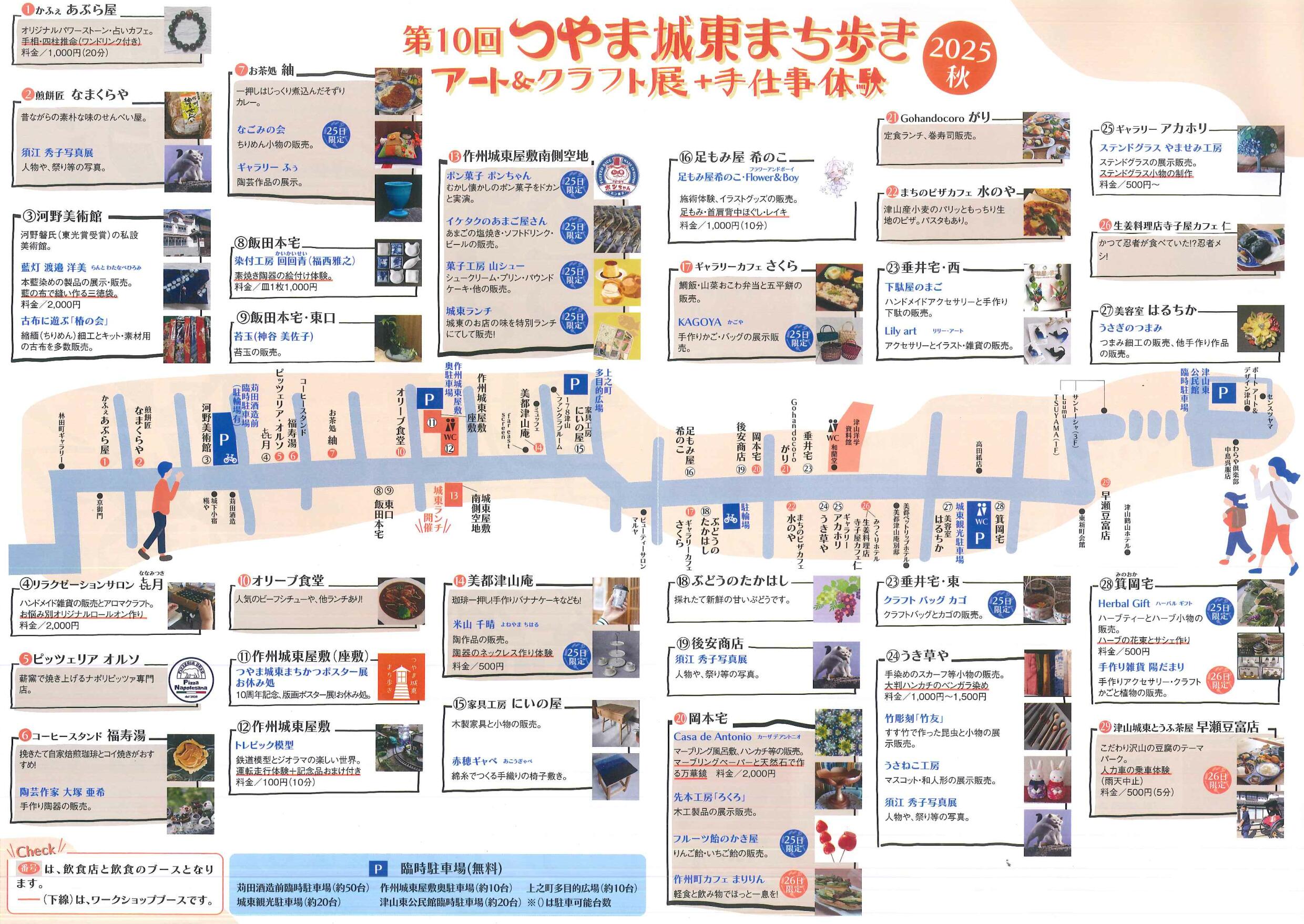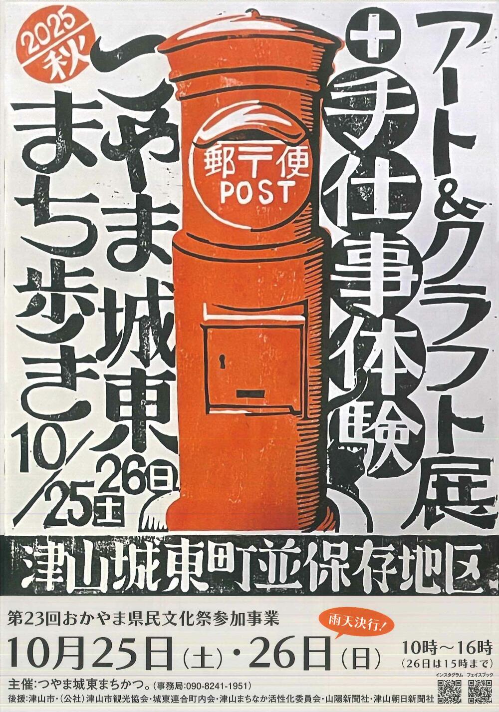 2025年10月25日・26日、第10回つやま城東まち歩き「アート&クラフト展+手仕事体験(主催:つやま城東まちかつ)」が、津山城東街並保存地区で開催されました。
