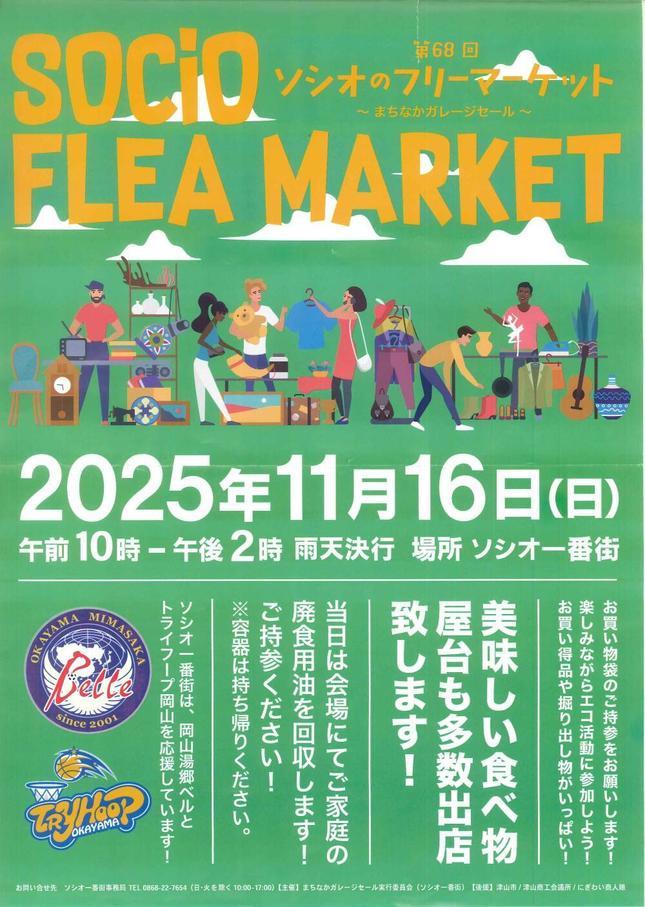 2025年11月16日「ソシオフリーマーケット(SOCIO FLEA MARKET)」が、午前10時から午後2時まで、ソシオ一番街で行われました。伺ったのが終了まじかだったため、既に店じまいの準備をされているお店もありましたが、それでも多くのみなさんでにぎわっていました。
