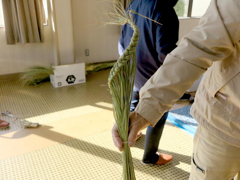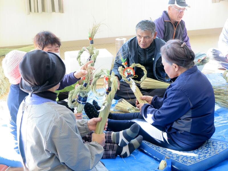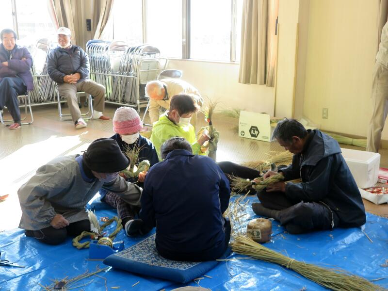 2,025年12月13日、大井東ふれあい学習館(津山市宮部下860-1)で地域のみなさんが集まって、恒例行事のお飾り作りとお餅つきをしました。