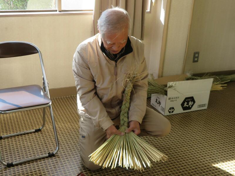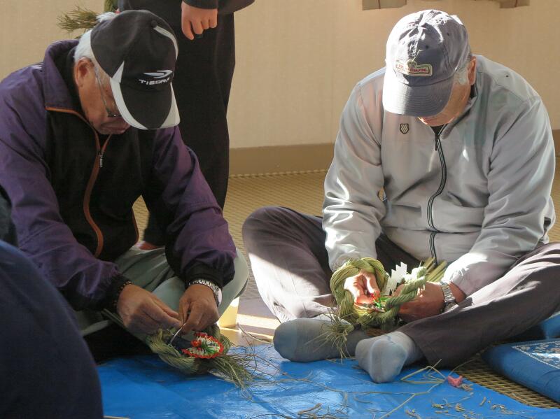 大井東ふれあい学習館で、お飾り作りと餅つき