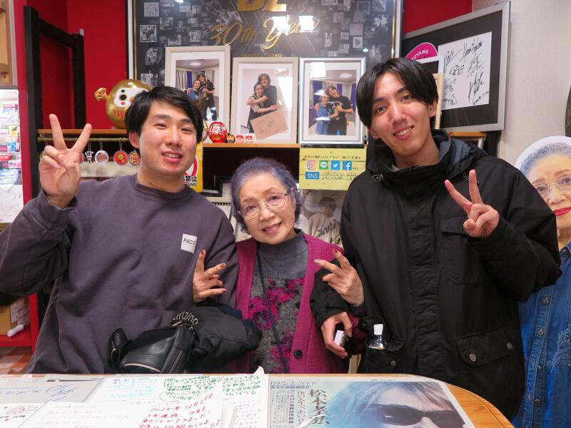 イナバ化粧品店の駐車場は車でいっぱい!一回りして再度午後やっと駐車場に入り、お店を訪れるもママ不在。待つこと少しでママが帰ってこられましたが車を降りるとすぐ、お店に入ることなく駐車場にて撮影会が始まりました。お店の中にもファンがいっぱい!ママ大人気です。