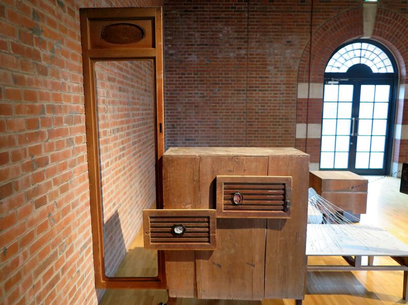 ポート アート&デザイン津山に着いてすぐカウンターの布の芸術や戸袋に衝撃を受け、次に中庭の展示を拝見しているうちに、まるで東京の美術館にでもいるような錯覚に陥りました。芸術は時には私を異次元の世界に引き入れてくれる不思議なものです。