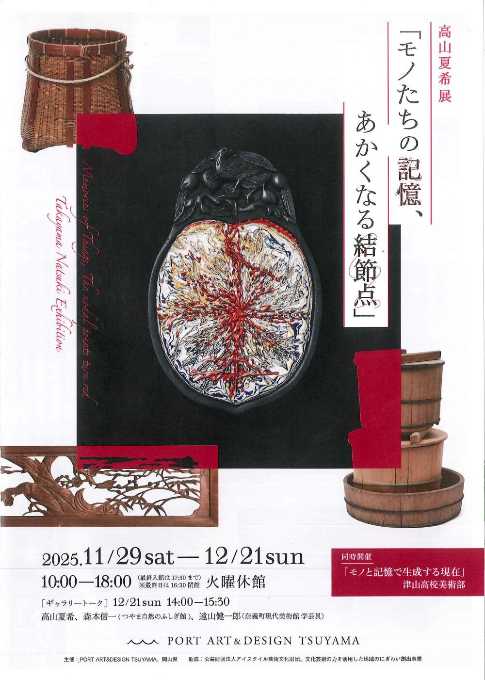 2025年11月29日[土]~12月21日[日]ポート アート&デザイン津山で、高山夏希展「モノたちの記憶、あかくなる結節点」が開催されていて12月10日に伺ってきました。