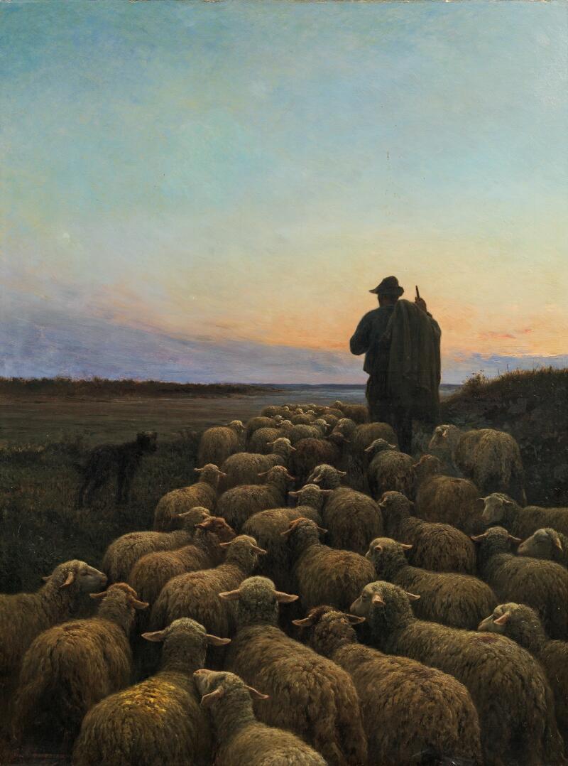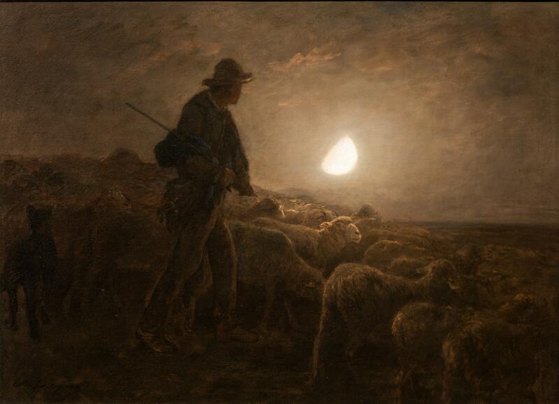 月夜の羊飼い(帰路) ミレー_シャイイ高原の女羊飼いと羊の群れ