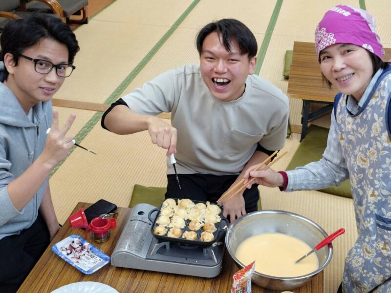 寮でそずり鍋の料理に挑戦! たこやきにも挑戦!