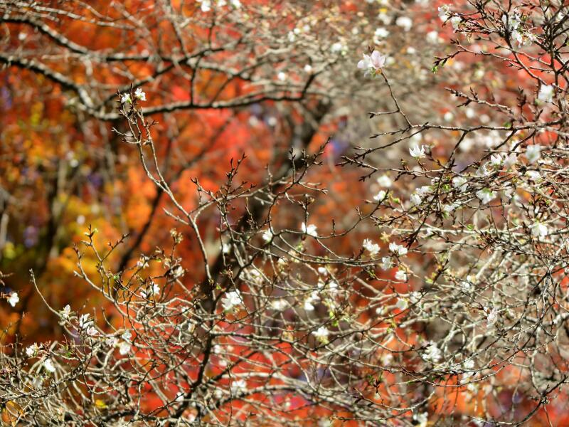 後醍醐天皇の足跡の一つに、後醍醐天皇にまつわる伝説のある「神代の四季桜」があり訪ねてきました。ここは、四季桜と紅葉の名所として知られ、丁度見ごろを迎えていました。