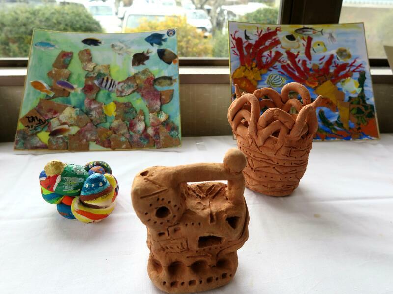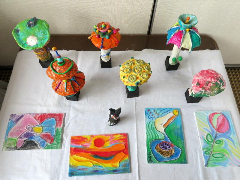 編み物や俳句の展示