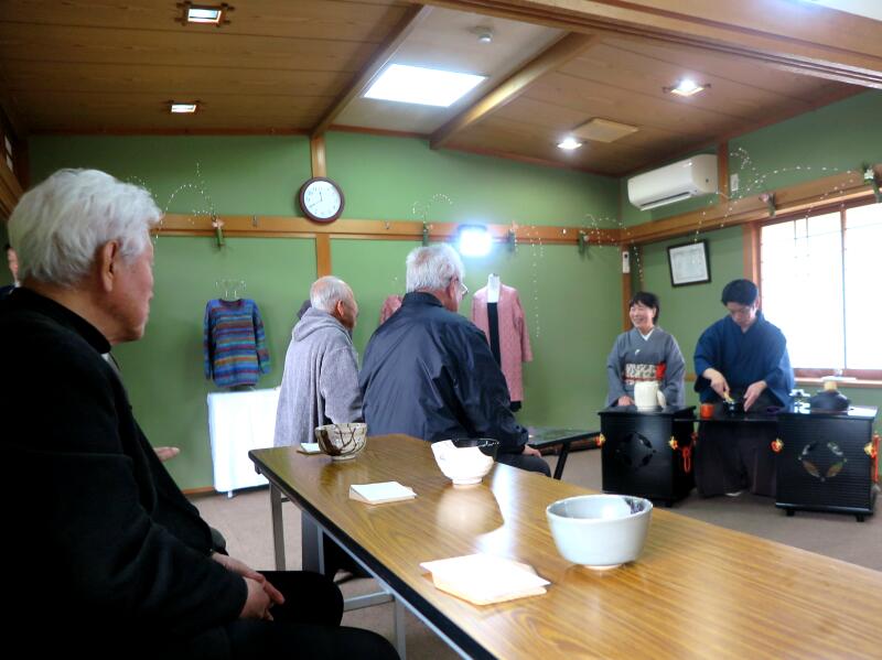 和室の展示コーナーでは、編み物や俳句、お茶席などがありました。愛育委員による豚汁の無料サービスがあり美味しくいただきました。