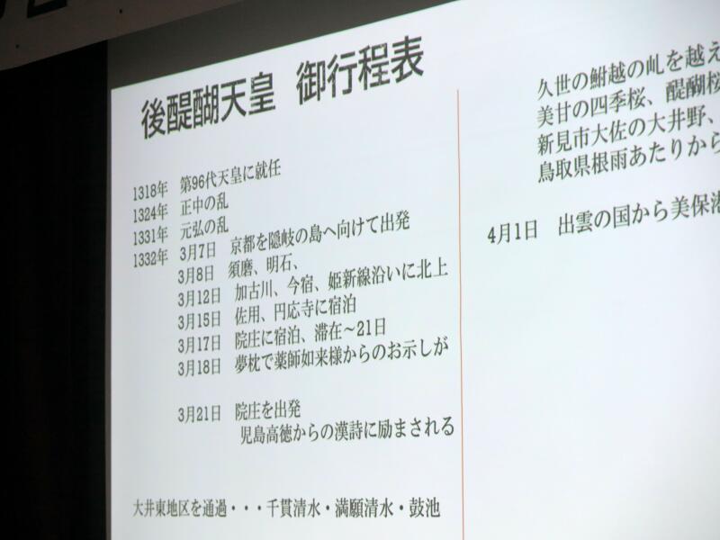 「後醍醐天皇遷幸の軌跡」と題した研究発表があり、県議や市議さんも熱心に聞いておられました。