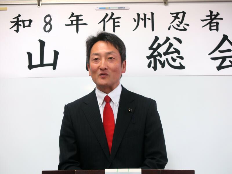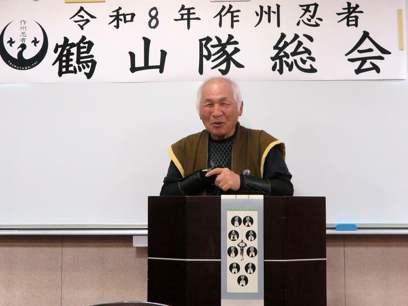 2026年2月23日に津山市中央公民館で令和8年度(2026)第6回の作州忍者鶴山隊総会があり、河部克己隊長から会員数を222人(にんにんにん)となるよう頑張ろうとのお言葉がありました。