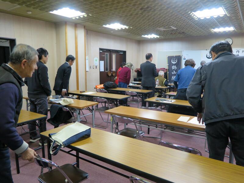 総会ではお元気に今年の抱負を語られていた克丸(河部克己)隊長が、3月3日の夜倒れられ、6日朝に亡くなられたとの連絡に一同大変ショックを受けました。3月3日昼には「14日には忍者百人衆に藤木副隊長と二人で行ってきますので報告楽しみにしておいてください。」と連絡をくださったばかりで残念でなりません。9日の告別式では作州忍者鶴山隊隊員一同で九字印を切り隊長をお送りいたしました。いつも何かとご指導くださっていた克丸隊長ありがとうございました。合掌