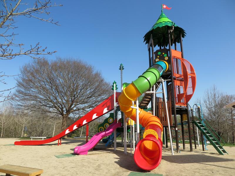 そこで、検索してみると「岡山県津山市は、市民の憩いの場として親しまれている大田のグリーンヒルズ津山にあるトリムの森西側に、大小の複合遊具をはじめ、障害の有無や年齢に関係なく誰もが楽しめるインクルーシブ遊具など計7基が設置。これらの遊具は「滑る」「登る」「渡る」といった基本的な動きに加え、「五感遊び」「回る」「揺れる」「くぐる」など、多様な遊びができるよう工夫されており、安全・安心への配慮とともに、周囲の景観にもなじむ設計となっている。総事業費は約3000万円。」とのことでした。