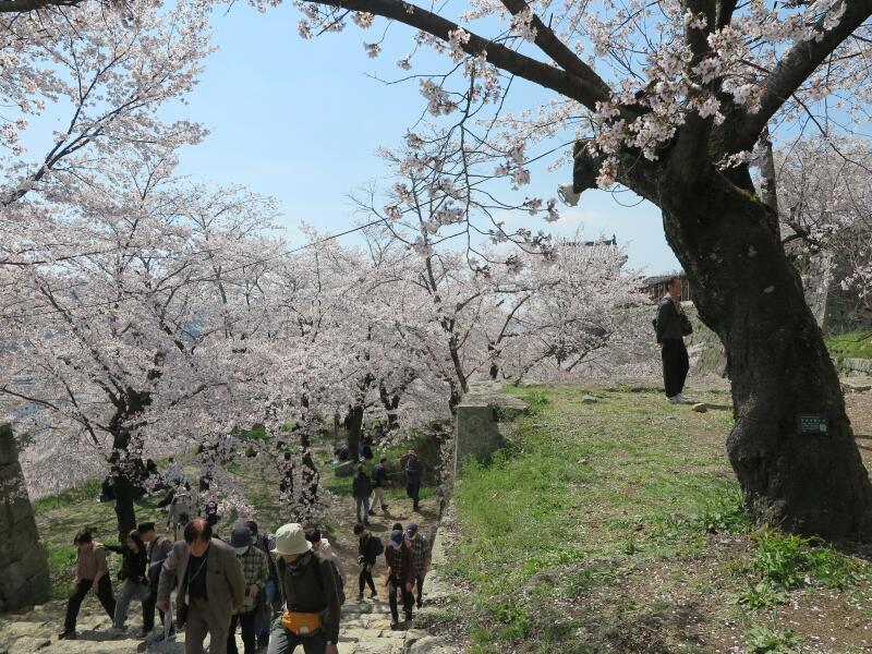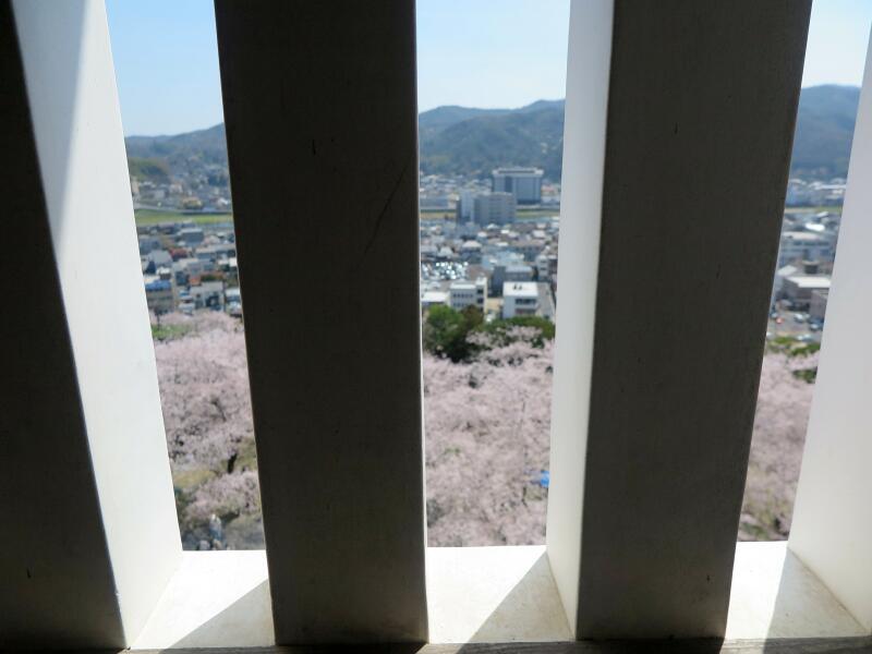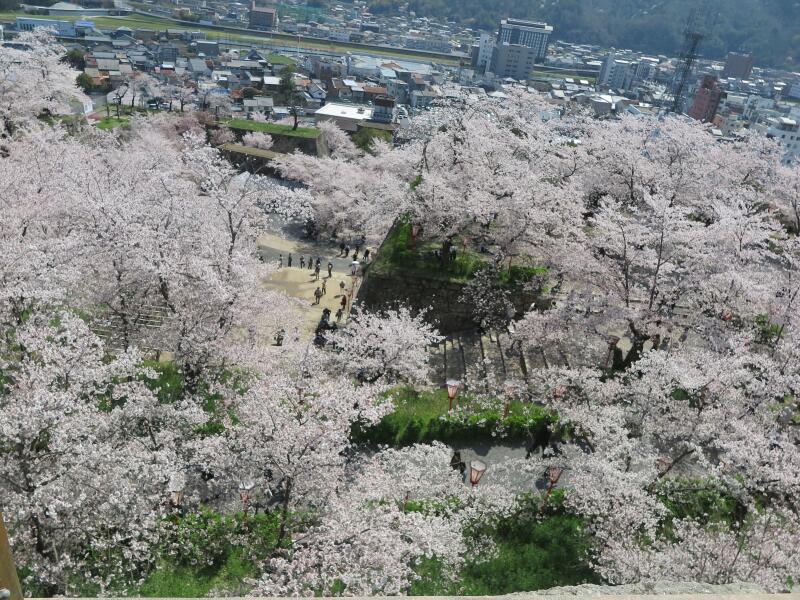 本丸から満開のさくらと市内を望む