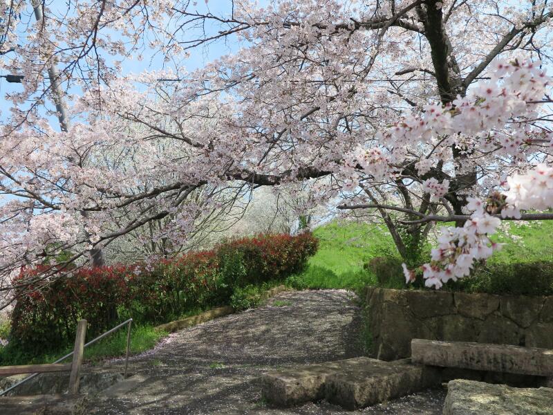 本丸の藤棚から見る満開の桜
