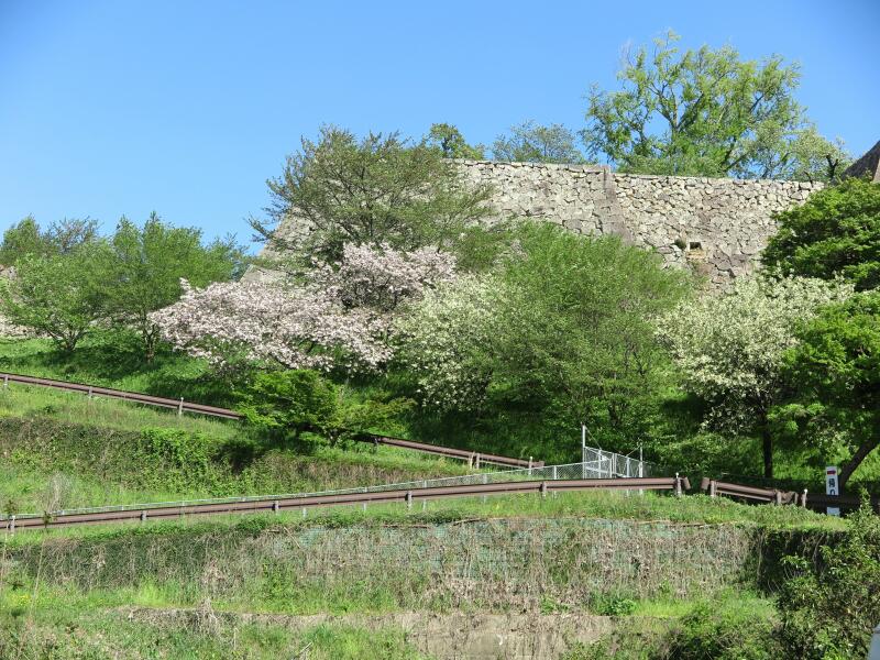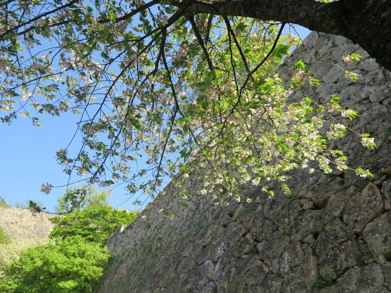 津山城(鶴山公園)裏門付近の遅咲きのさくらの花