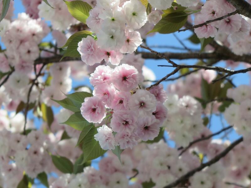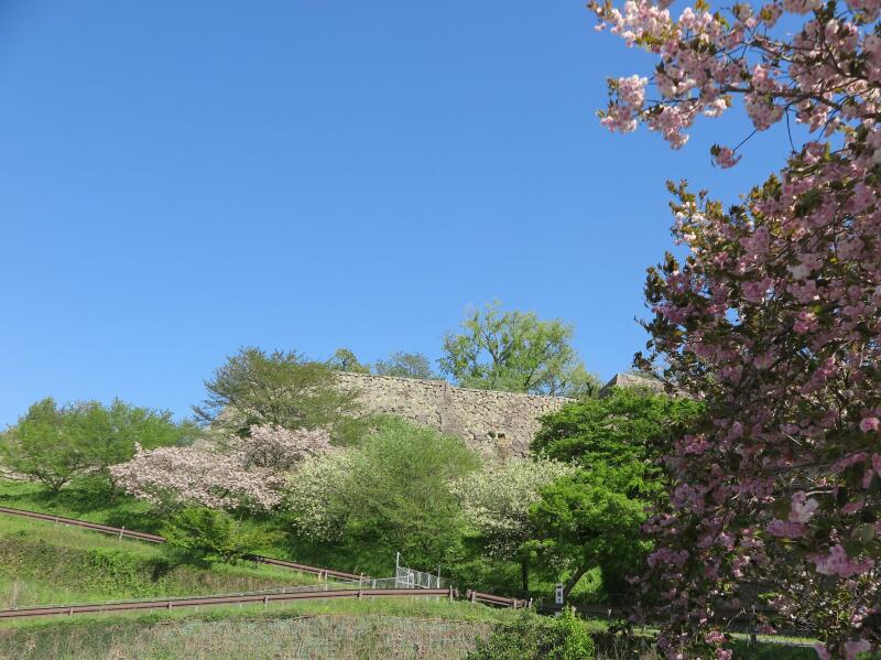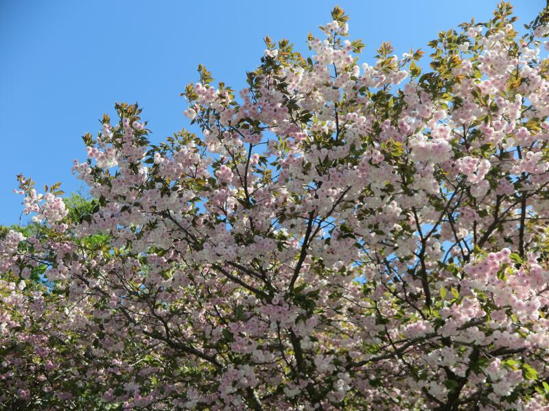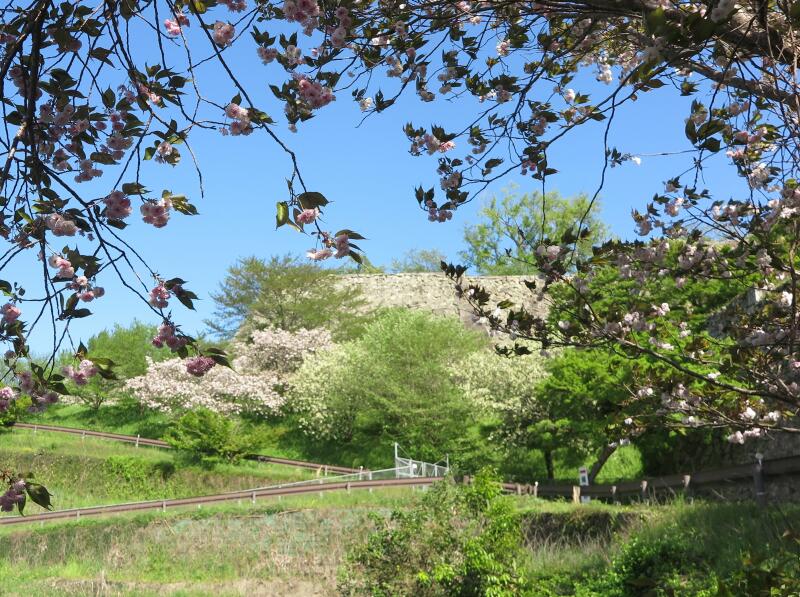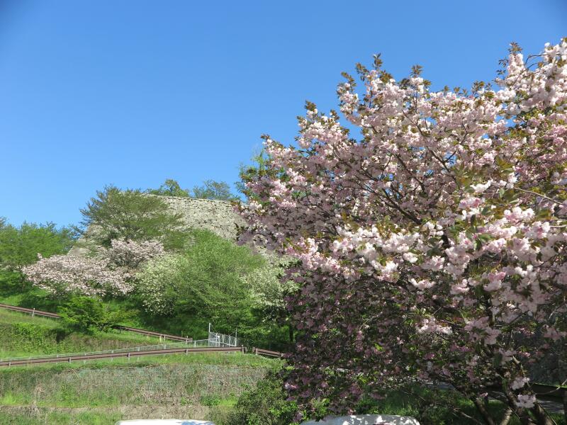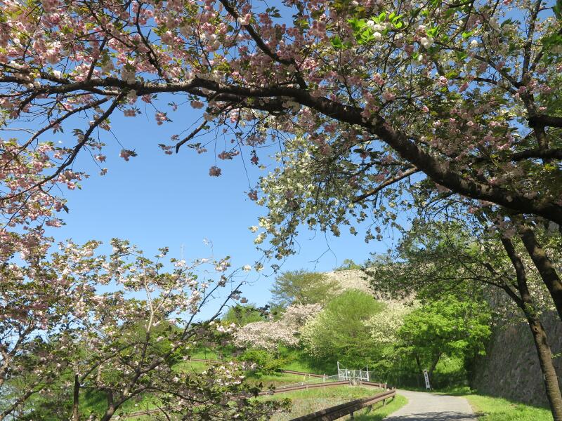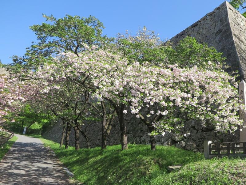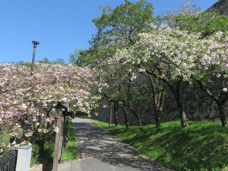 2026年4月16日、津山城(鶴山公園)裏門付近の遅咲きのさくらの花が満開でした。