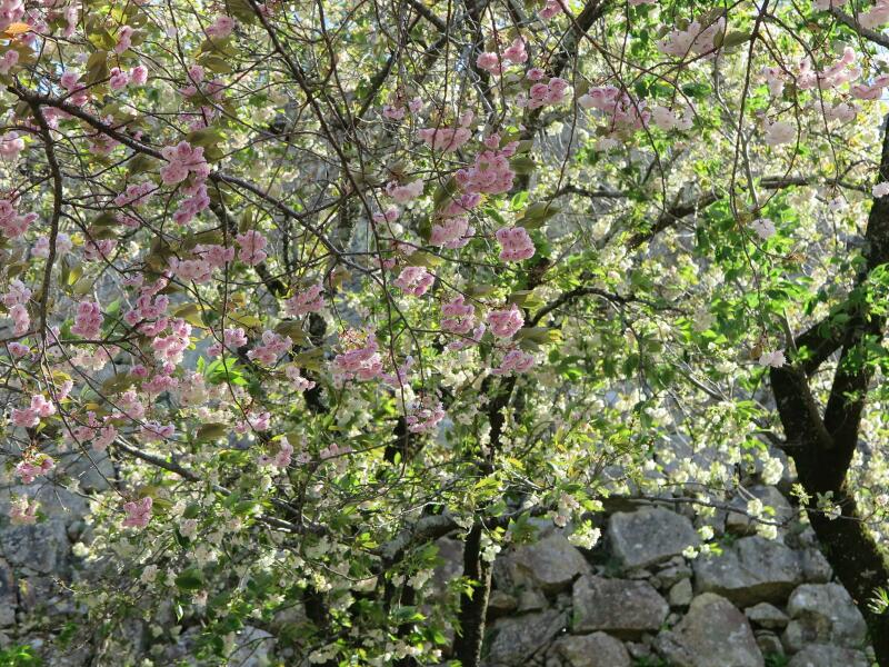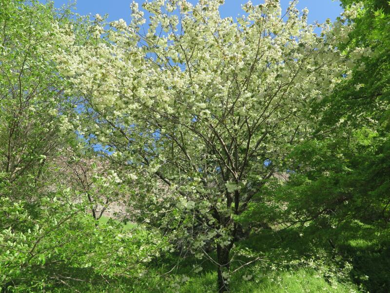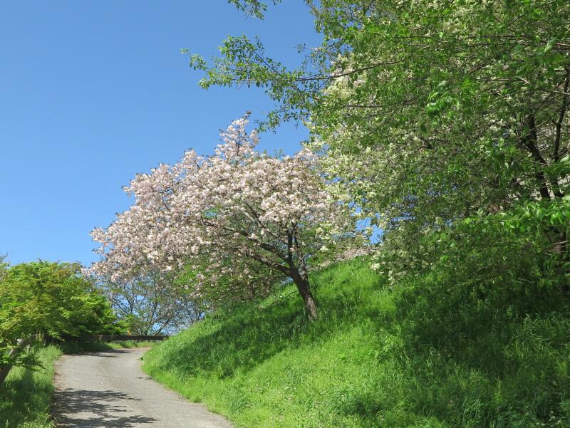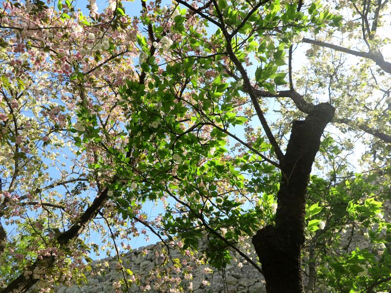 ここのさくらの花は、種類も多くしかも遅咲きなので、津山城(鶴山上)の三の丸、二の丸、本丸のそめいよしのが散った後に楽しめる桜の花処です。(2014年のさくら)