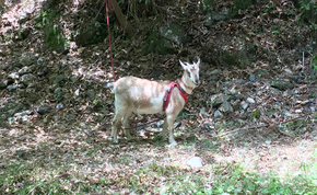 お店の外にはかわいいヤギがいました。昔は田舎ではヤギを飼うのが普通だったそうです。ヤギのミルクは人間の母乳に一番近いので、出産後に母乳が出にくい時はヤギのミルクを赤ちゃんに飲ませたそうです。またあぜ道につないでおくと草を食べてくれるので、草刈りをする必要がなくなるんだそうです。実際に、ヤギがつながれているあたりはしっかり草が食べられていましたよ!