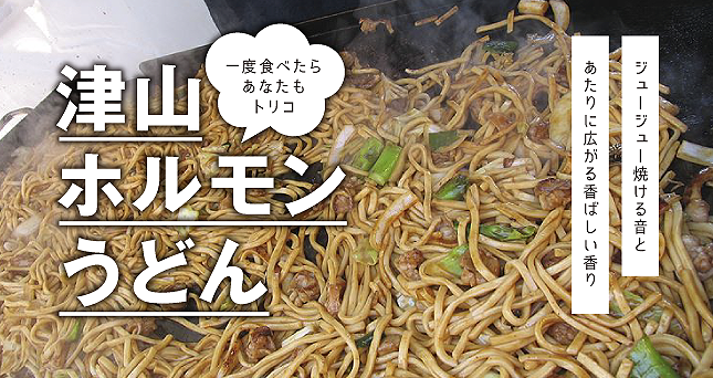 ビールのおつまみに!休日のお昼ごはんに!ざくっと切って、パパッと炒めて簡単に出来る津山メシ!津山の人たちが愛してやまない「ホルモン焼き」と「ホルモンうどん」のレシピをご紹介します。